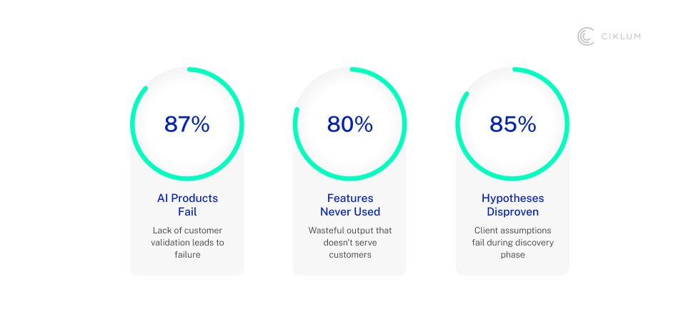 • Most AI projects fail because teams don’t validate whether the problem is worth solving.