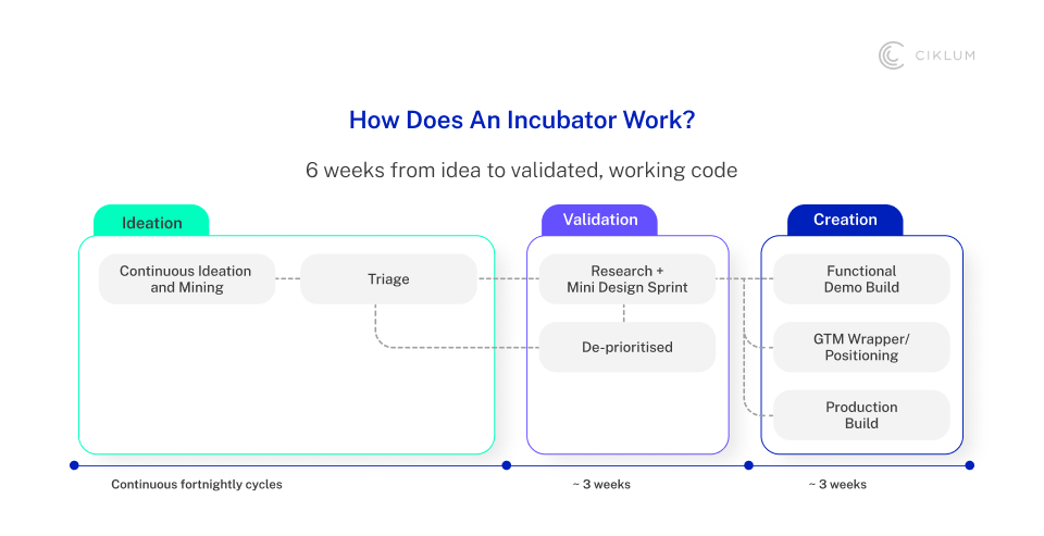 Many organisations now recognise that these failures come from skipping one of the three gates, not from weak technology. And they’re realising they need a repeatable, structured way to move through. Few have this internally. Increasingly, teams are turning to incubator-style models designed to enforce this discipline from day one.
