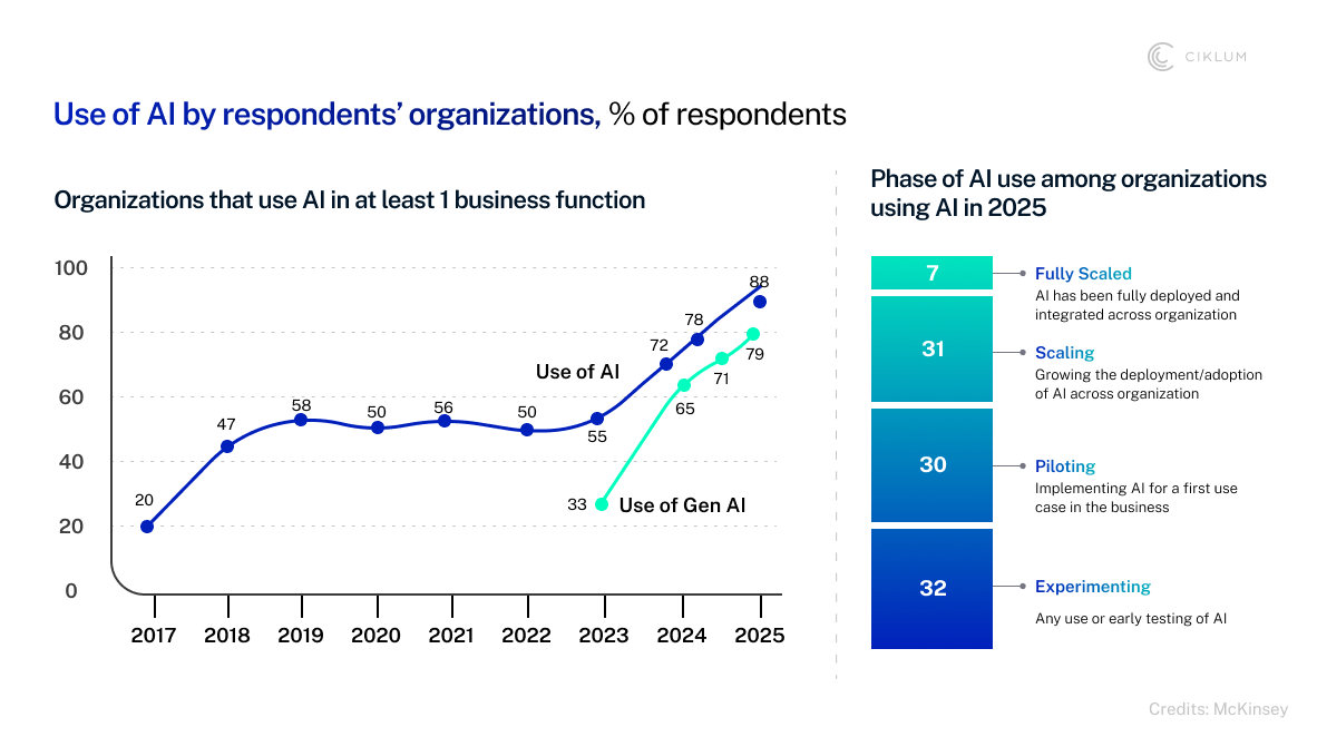 2025 exposed something most organisations weren’t prepared to confront: AI wasn’t collapsing at the product level it was collapsing at the problem level. Teams built rapidly, shipped pilots, and showcased prototypes, but few stopped to confirm whether the problem itself was real, relevant, or strategically aligned. AI usage surged from 55% to 78% in a single year, driven by pressure to demonstrate progress, yet outcomes flatlined. It became the year enterprises finally realised that building more AI was not the same as delivering more value.