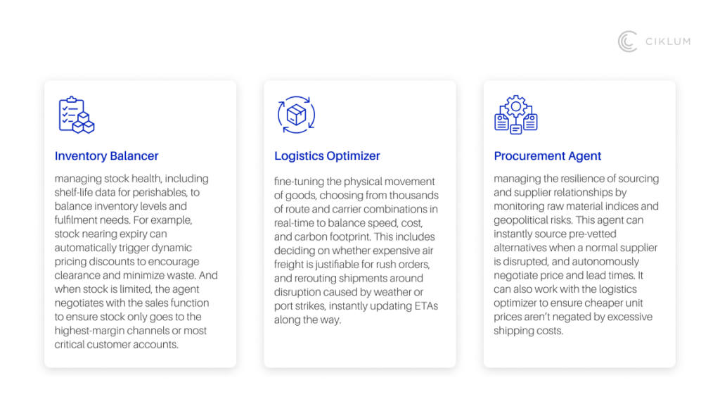 At Ciklum, we have implemented these types of supply chain agents for a global automotive manufacturer, as part of a wider AI implementation that has saved them over $100million. AI-powered agents have helped reduce the manual workloads involved in their supply chain, and accelerate response times.